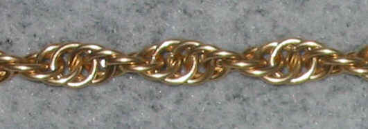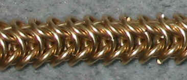 Here we have a French Rope knit, again in the 1/8" gold-filled rings. Note that this knit is not available in 18AWG wire & 1/8" rings, because the knit is just too tight. It will work, however, in 18AWG 3/32"rings. |